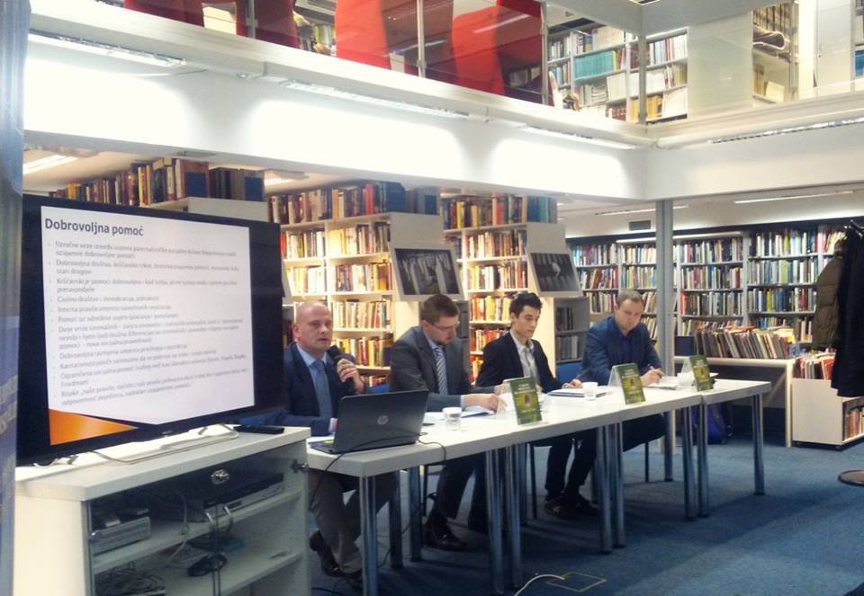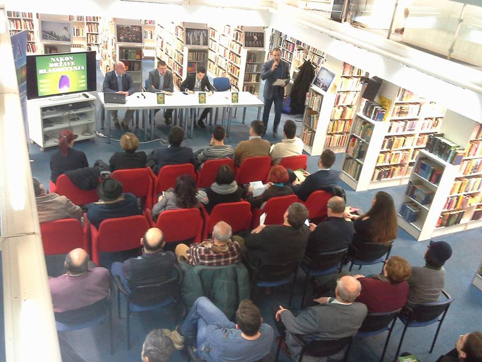 Knjiga je predstavljena 18. siječnja 2016. u kn knjižnici i čitaonici Bogdana Ogrizovića, od strane uredničko-prevoditeljskog tima Centra: Daniel Hinšt, Filip Galić i Domagoj Belak. Moderator je bio Milan Deskar Škrbić. Glavne teme knjige navedene su u kratkoj prezentaciji knjige Nakon države blagostanja.