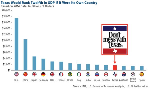 Danas je ekonomija Texasa među najrazvijenijima u SAD-u (2. po vrijednosti BDP-a odmah iza Kalifornije, 1. po vrijednosti izvoza). Ukoliko ga promatramo samostalno kao saveznu državu po vrijednosti BDP-a je među 15 najrazvijenijih ekonomija svijeta. Texas stvara BDP otprilike u vrijednosti kanadskoga.