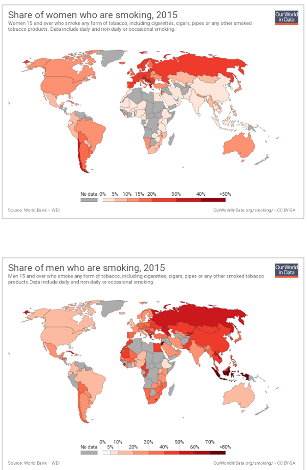 Negdje se zabrane teško provode: Kuba je zabranila pušenje samo na radnim mjestima i na javnim mjestima, ali se zabrana u praksi ne poštuje i niti se odnosi na kafiće i klubove. Cipar je 2010. proveo zabranu za kafiće i klubove, ali se ista teško provodi (kao i u Grčkoj).